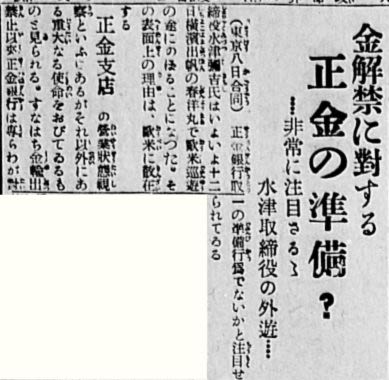 On April 9, 1929, The Nichi-Bei newspaper detailed Mizutsu's upcoming voyage from Yokohama to Europe and North America. This information, relayed from Tokyo by Gōdō, implied that Mizutsu's inspection tour of overseas branches had a more significant underlying objective: to lay the groundwork for the resumption of Japan's gold export operations.