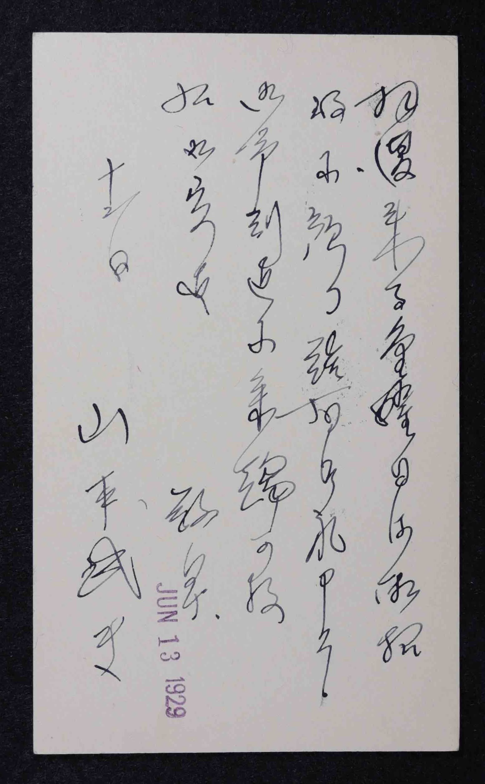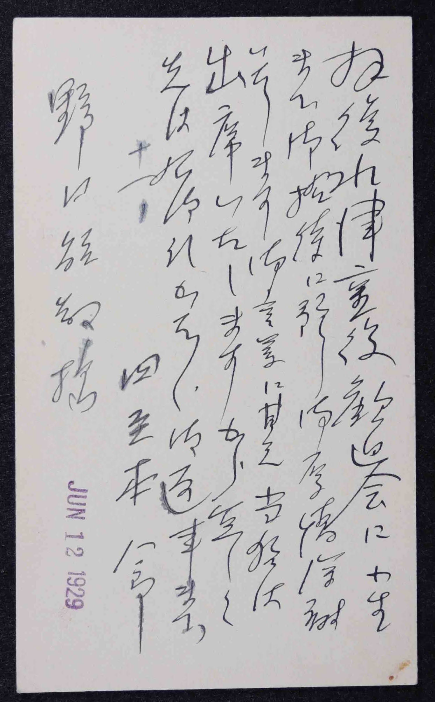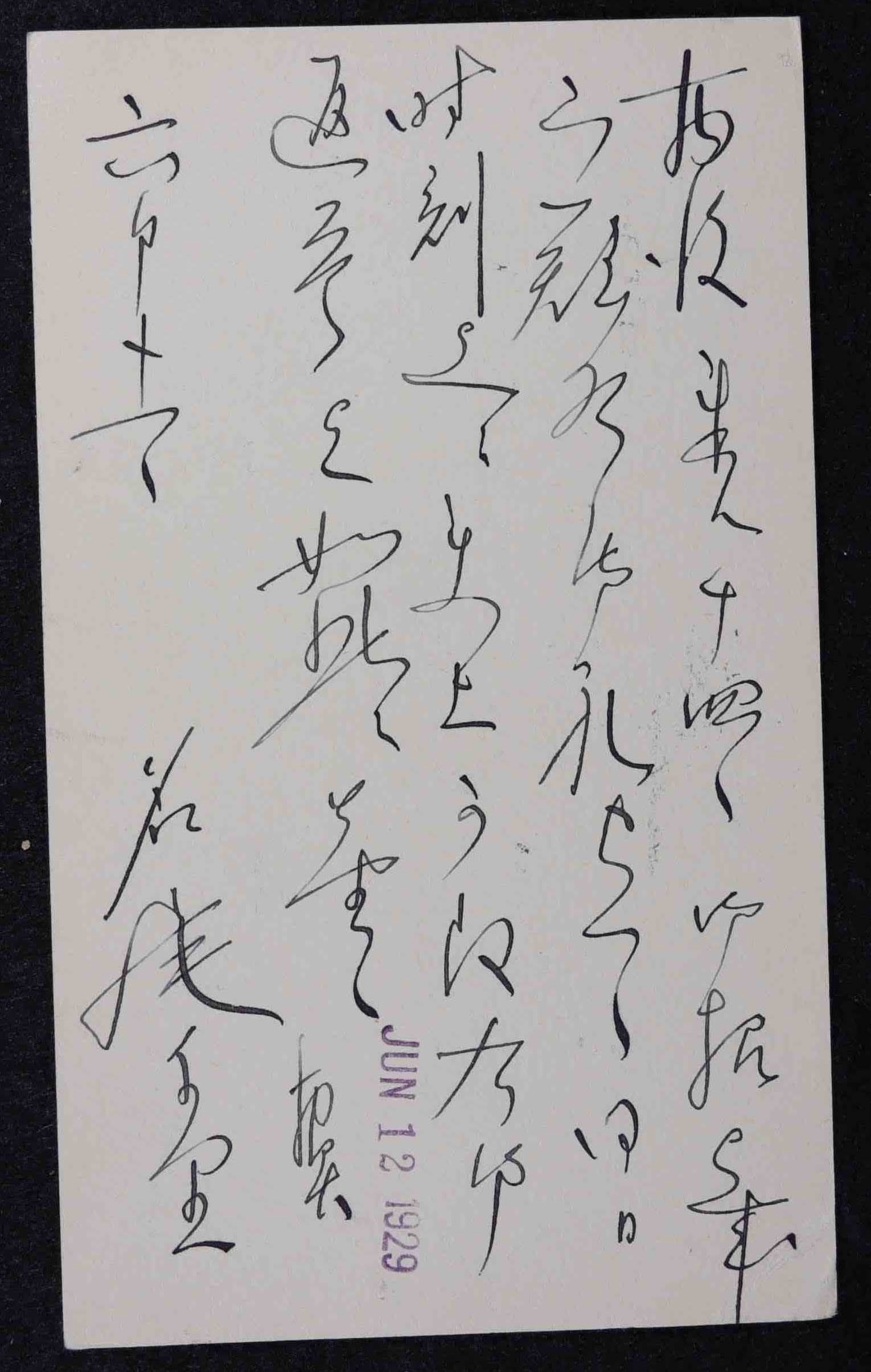 Takanoshin Domoto's reply card. YSB records, JAHA Archives, JCCCNC